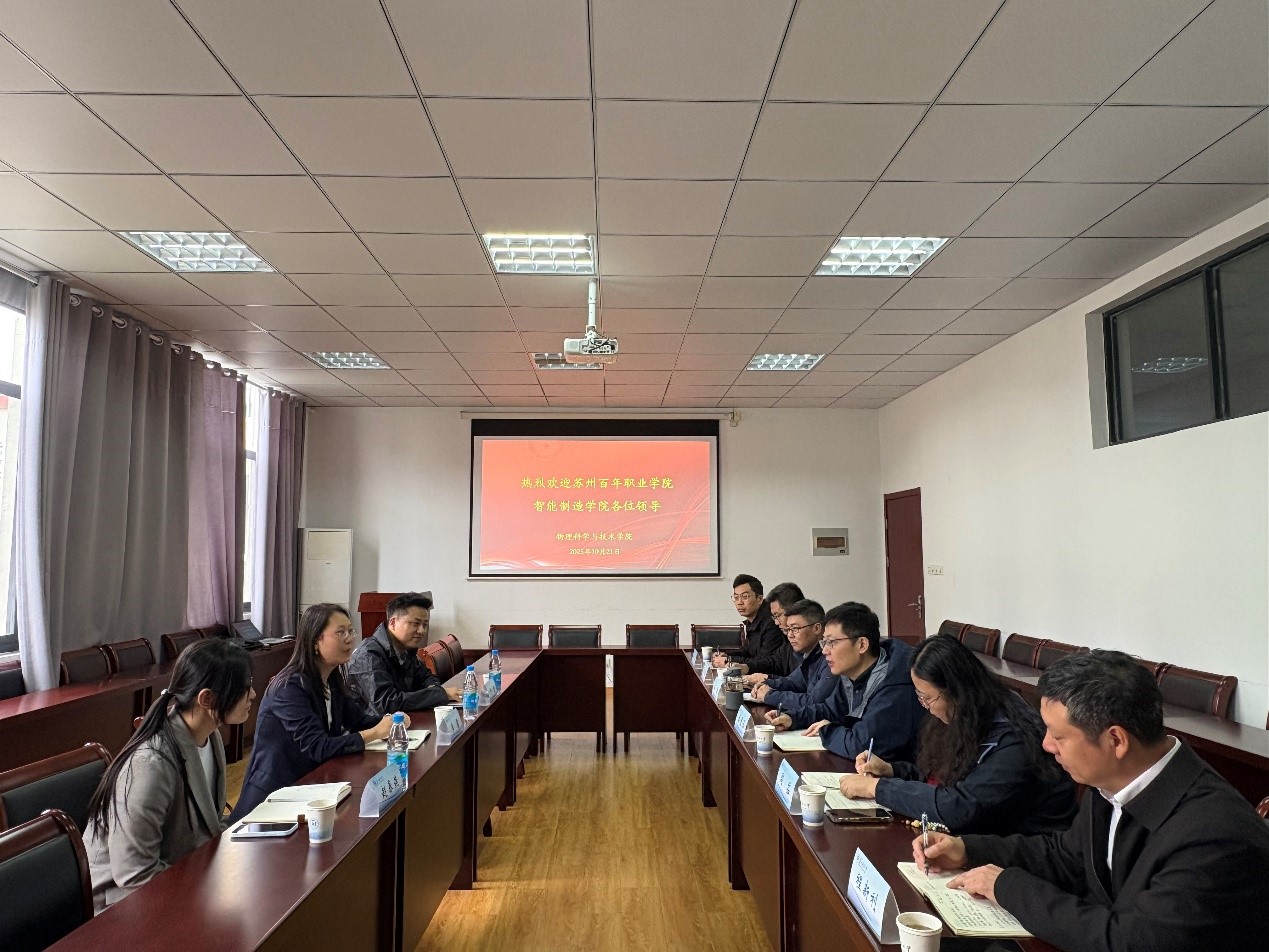 10月21日,苏州百年职业学院智能制造学院党总支副书记(主持工作)兼副院长(主持工作)李露一行来我院开展调研交流。会议由院长姜昱丞主持,学院领导班子其他成员出席会议。