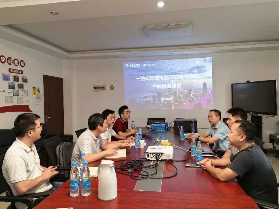9月23 日,为落实学院党委践行“党建+专业建设”的发展理念,学院特邀中国半导体行业协会集成电路分会产教融合业务总监孙长生、紫光教育专家包启峰、中国电子工业标准化技术协会陈刚一行来访,学院副院长程新利及骨干教师邹菁云、李阳和张程等与来访专家围绕微电子专业学科建设及创新888集团等议题,展开面对面、深层次的座谈交流。
